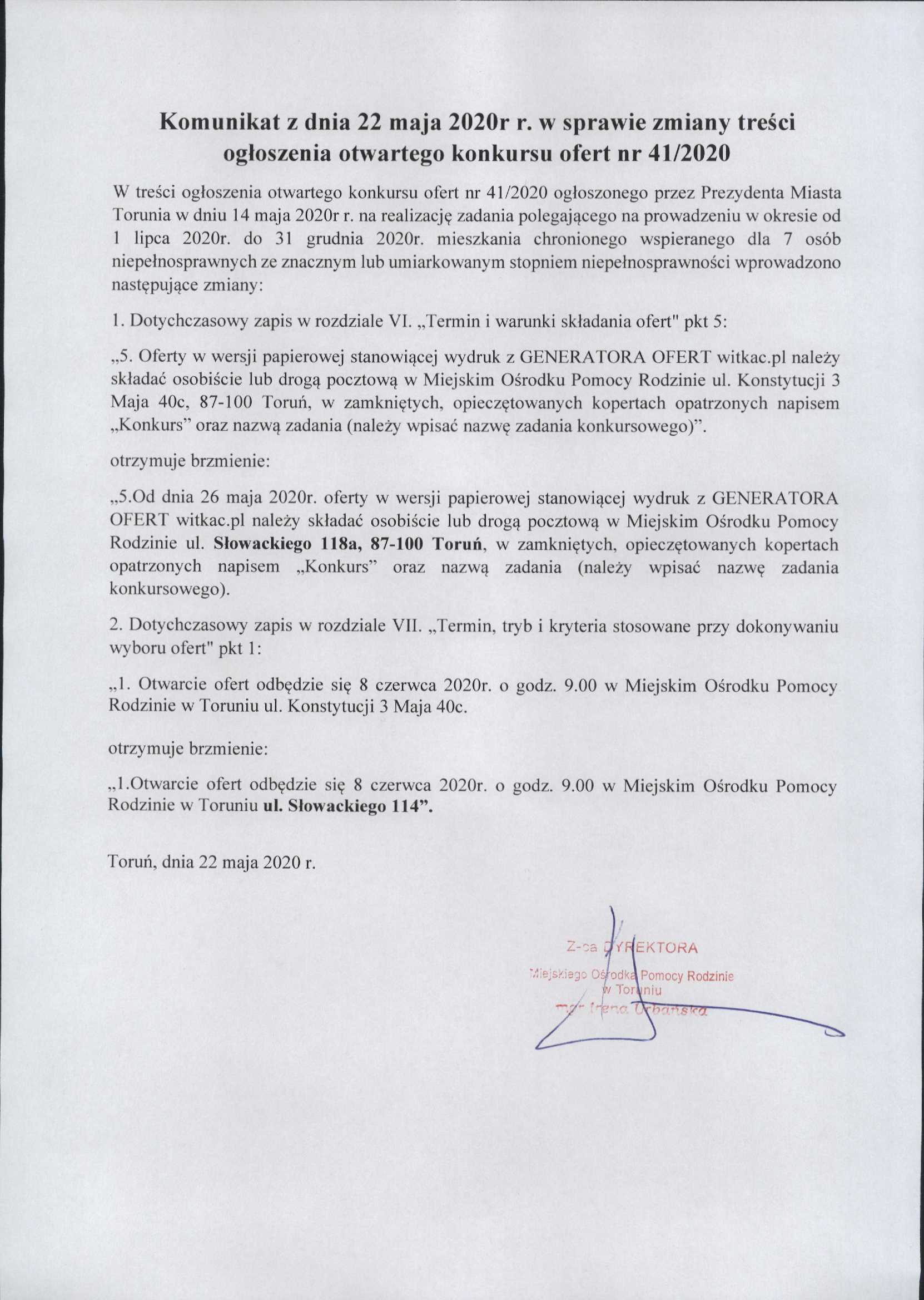 otwarty konkurs ofert na realizację zadania polegającego na prowadzeniu w okresie od 1 lipca 2020r. do 31 grudnia 2020r. mieszkania chronionego wspieranego dla 7 osób niepełnosprawnych ze znacznym lub umiarkowanym stopniem niepełnosprawności.